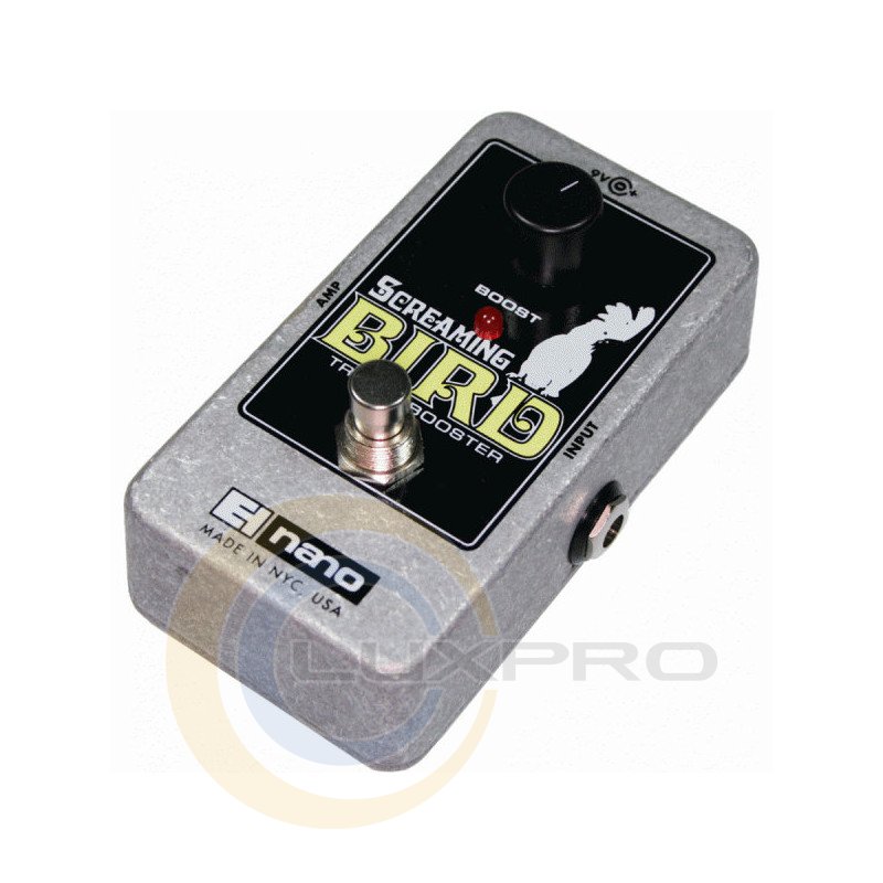 Педаль Electro-Harmonix Screaming Bird ефектів, побудована на класичній конструкції 70-х. Адже це підсилювач високих частот. Пропускна здатність у неї 1,6 - 2,4 кГц. Тому просто перевантажуючи підсилювач або надаючи особливої гостроти звуку, пташка так чи інакше завжди буде найкращим чином прорізатися через мікс, а дзьоб її настільки наблизиться до вуха слухача, що цього не можна буде не помітити.Характеристики: