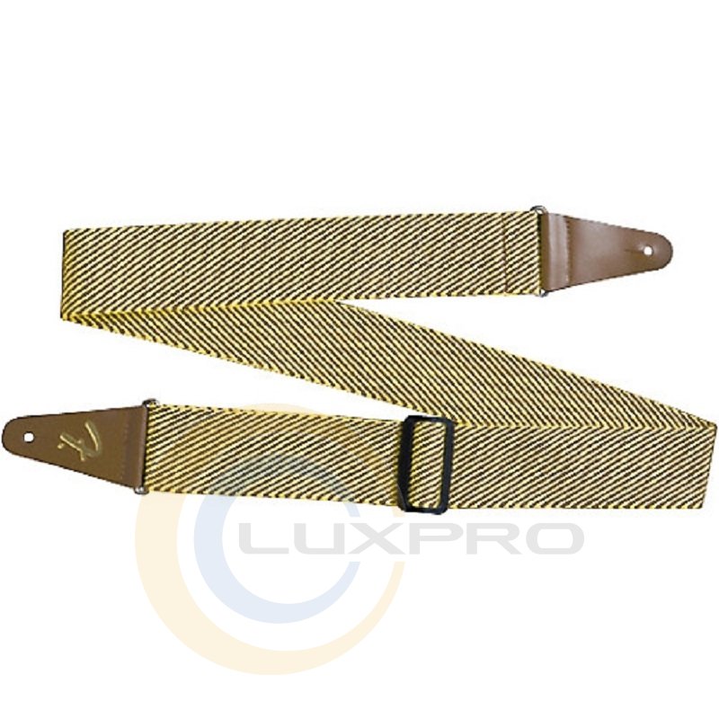 FENDER STRAP VINTAGE TWEED 2 - ремінь для гітари, пошитий з якісної шкіри і тканини. Важливо зауважити, що з даних матеріалів шиють чохли для підсилювачів і гітар FENDER, що говорить про міцність ременя. При цьому він досить м'який, що забезпечить гітаристу комфортну гру.