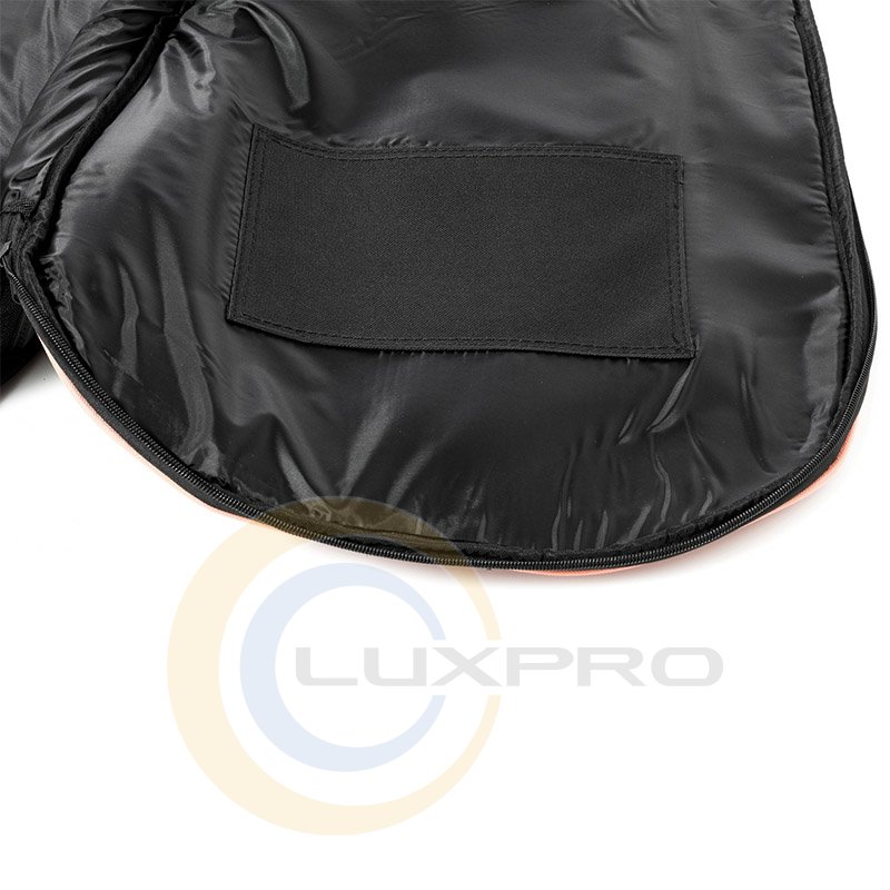 Внутрішня частина чохла посилена для захисту струн і бриджу. По краях встановлені гумові протиударні накладки. Колір: чорний з помаранчевим.
