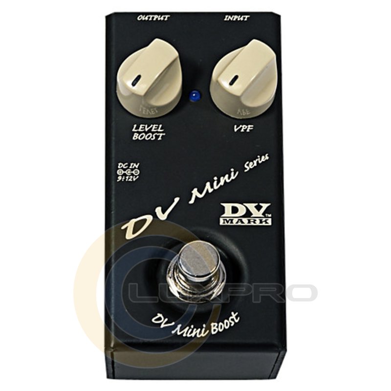 Педаль ефектів DV Mark для гітар. Вхід: mono ¼ "jack; вхідний опір: 1 МОм / 6 Vpp; вихід: mono ¼ "jack; вихідний опір: 470 Ом / 6 Vpp; регулятори: Level Boost, VPF; вага: 230 г.