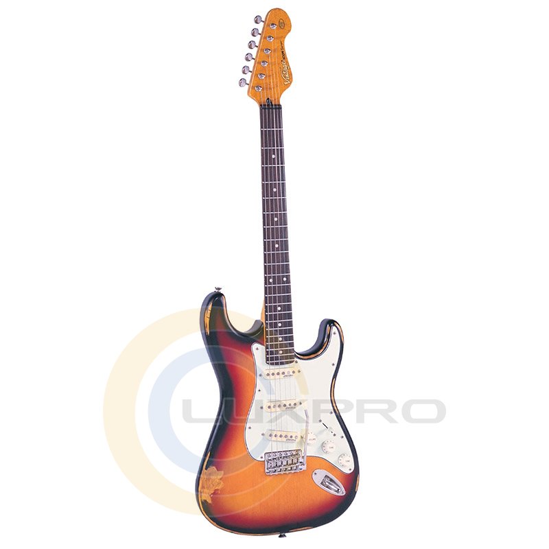 Електрогітара V6MRSSB - електрогітара типу стратокастер. Корпус зроблений зі східної тополі, кленовий гриф та накладка на нього із полісандру. Мензура складає 648 мм, гітара має 22 лади. Кілки Wilkinson® WJ55 E-Z-LOK™, тремоло Wilkinson® WVC, звукознімачі Wilkinson® S-S-S, колір - сонячний спалах з елементами потертості.