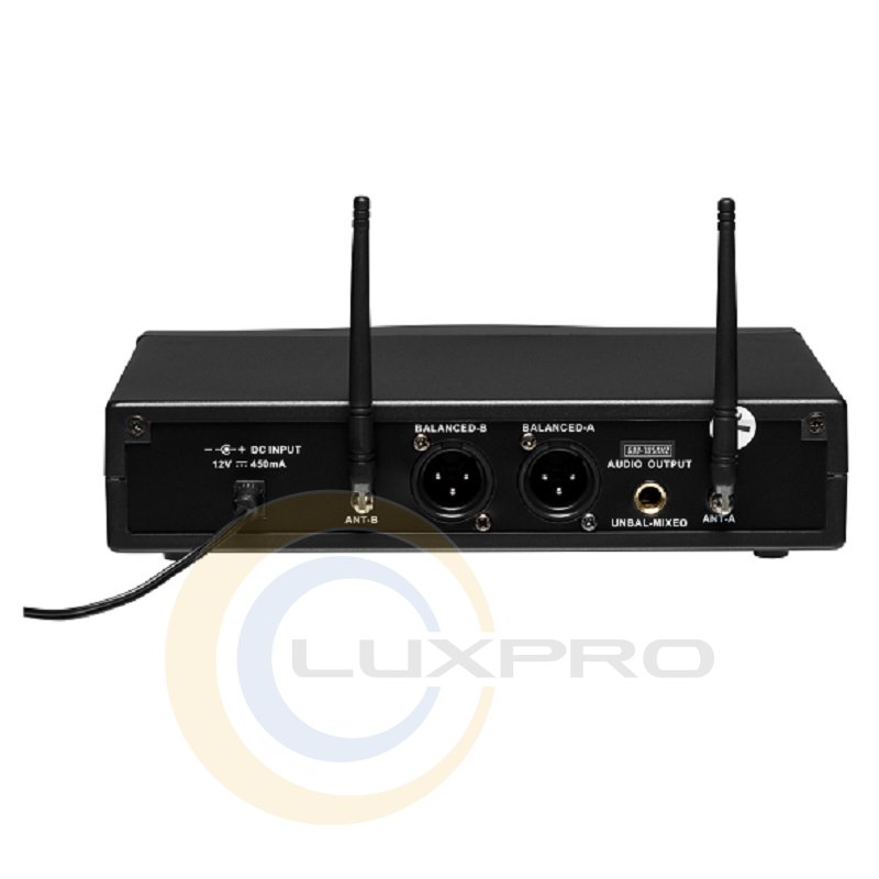Комплектація: 1 приймач, 2 конференц мікрофона, 1 інструментальний кабель, адаптер живлення 110 - 240 V, 4 батарейки розміру АА для мікрофонів, інструкція англійською мовою.