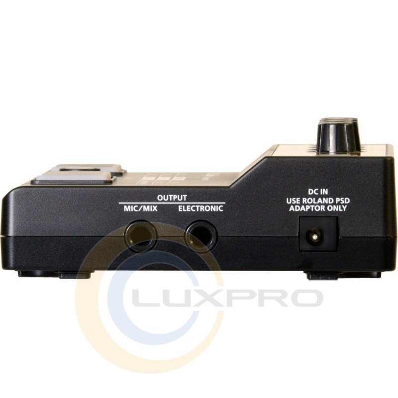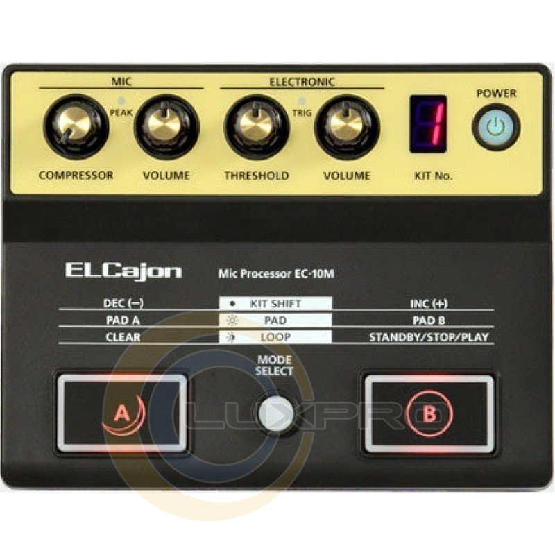 ROLAND EC10M - процесор розроблений для використання разом з акустичним кахона. Компактний процесор ROLAND EC-10M з живленням від батарейок знімає звук акустичного кахона за допомогою вхідного в комплект поставки кліпсовой мікрофона і одночасно дозволяє запускати відтворення безлічі вбудованих електронних тембрів, накладаючи їх на звук акустичного кахона. Обидва звуку, електронний та акустичний, можна подати на підсилювач або звукопідсилюючу систему, забезпечуючи тим самим абсолютний контроль за виконанням на сцені. За допомогою вбудованого блоку зациклення можна створювати перкусійні фрази і управляти відтворенням додаткових звуків за допомогою інтегрованих ножних педів A / B або опціональних тригерних педалей для бочки. Де б ви не виступали, EC-10M збагатить звучання акустичного кахона, відкриваючи для нього світ нових можливостей.