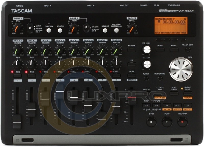 Tascam DP-03SD - це станція записи надає можливість запису до 8 аудіо треків в CD якості на карти SD і SDHC об'ємом до 32 гігабайт. C цим легким, компактним і зручним пристроєм Ви отримуєте широкі можливості для звукозапису в будь-якому місці і в будь-яких обставинах без шкоди для якості.