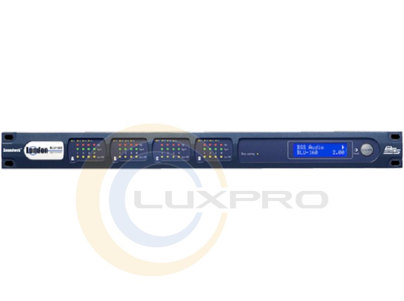 BSS BLU160 - отличается низкой задержкой, отказоустойчивой шиной цифрового звука на 256 каналов, использует стандартный кабель Cat. 5e, обеспечивающий расстояние между совместимыми устройствами до 100 метров. Для увеличения расстояния между устройствами до 40 км, можно использовать Волоконные преобразователи.