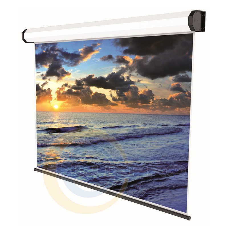 Моторизований екран професійного рівня підходить для найрізноманітніших цілей: для використання в конференц-залах,громадських місцях, вдома, на презентаціях. Італійське виробництво доповнене надійним німецьким електродвигуном 220V (знаходиться справа), керувати яким можна за допомогою кнопки або дистанційного пульта керування. Кнопка входить до комплекту та монтується на стіну. До речі, швидкість згортання/розгортання полотна збільшена для зручного користування в офісі або вдома, а безшумний двигун - ще одна беззаперечна перевага екрану Sopar.