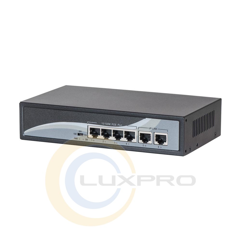 PoE-комутатор HongRui HR901-AF-42N призначений для побудови мереж передачі даних малого і середнього масштабу. Завдяки підтримці технології PoE, комутатор є ідеальним рішенням при впровадженні систем IP-відеоспостереження в офісах, приватних будинках, квартирах, дозволяючи живити до 4-ми встановлюваних камер за допомогою того ж кабелю, по якому передається потік даних. Це дозволяє спростити процес інсталяції і заощадити на прокладці кабелів живлення.