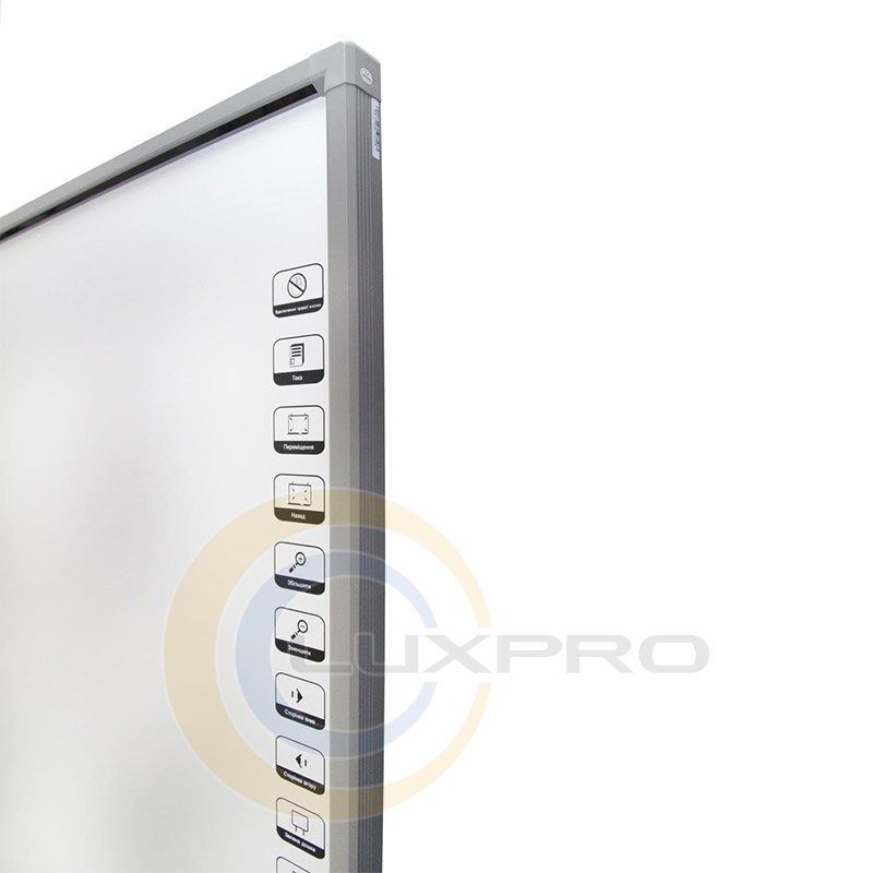 - Комплект поставки: інтерактивна дошка — 1 шт., маркери — 3 шт., телескопічна указка — 1 шт., настінне кріплення — 1 шт., кабель USB 5 м — 1 шт., керівництво користувача — 1 шт., диск з програмним забезпеченням — 1 шт.