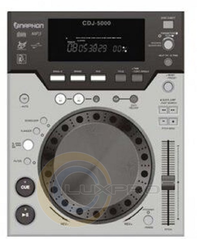 CDJ5000 - новий CD плеєр, формат: MP3 CD, CD-R, CD-RW. Кількісні: D / A конвертер 16 Bit. Пам'ять програм: 20 композицій. Звук / шум: 88dB (A-зважений). Діапазон частот: 20-20kHz + / -2дБ. Аудіовихід: небалансовий через RCA. Вихід: 2Vrms. Потужність: 30W.