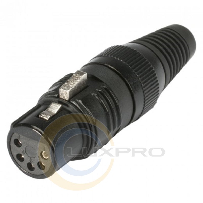 HI-X5CF-M - кабельний роз'єм XLR 5-pin (розетка), посріблені контактні гнізда, кабельний, прямий. Корпус металевий, з цинкового сплаву з порошковим покриттям. Кабельні контакти під пайку, прямі, хромовані, самозащелківающіеся зуб-замок. Колір роз'єму чорний.