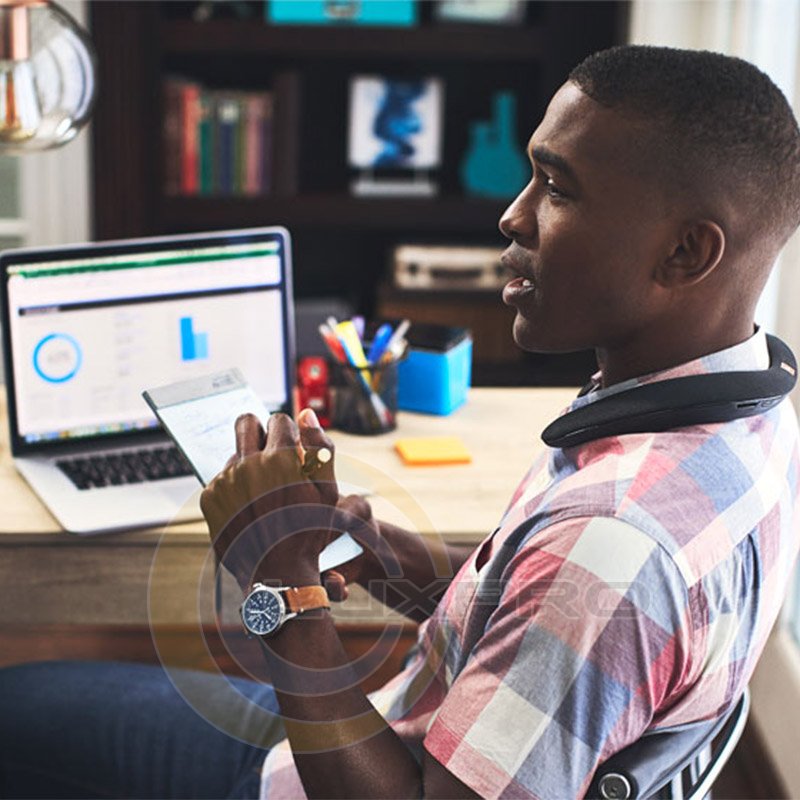 Завдяки конференц-системі з двома мікрофонами і технологією ехоподавлення забезпечується кришталево чисте звучання під час телефонних розмов. Конструкція для носіння на шиї, ергономічна форма, прості елементи управління і м'яка тканинна обробка забезпечують бездротове відтворення без навушників, що пропонує вам абсолютно новий досвід.