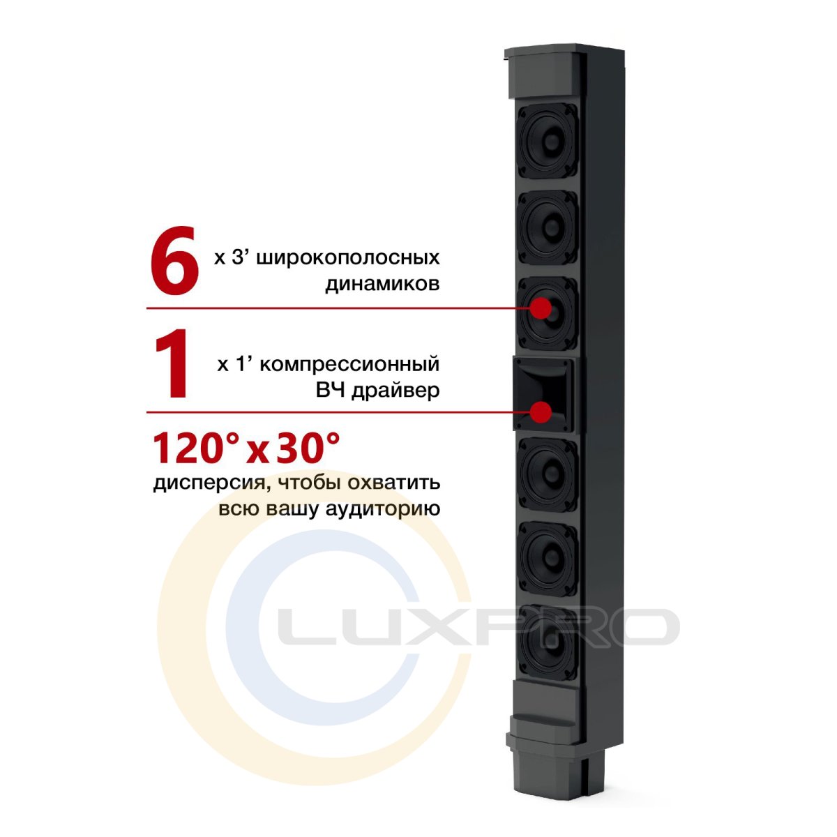 - акустичний комплект: 10 "сабвуфер + лінійний масив: 6 х 3" СЧ + 1 "ВЧ;