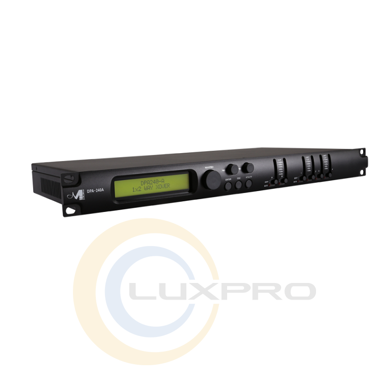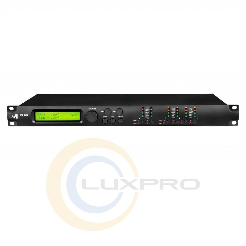 Marani DPA 240A - процесор, для управління акустичними системами, 2 входи, 4 виходи, 5-ти смуговий параметричний еквалайзер по входу і 7 по виходу, crossover, limiter, deley 848, 998 ms, 24 змінюваних пресету для настройки параметрів сигналу керованими системами, USB, PC для управління з комп'ютера, повне матричне мікшування вхідного і вихідного сигналу.
