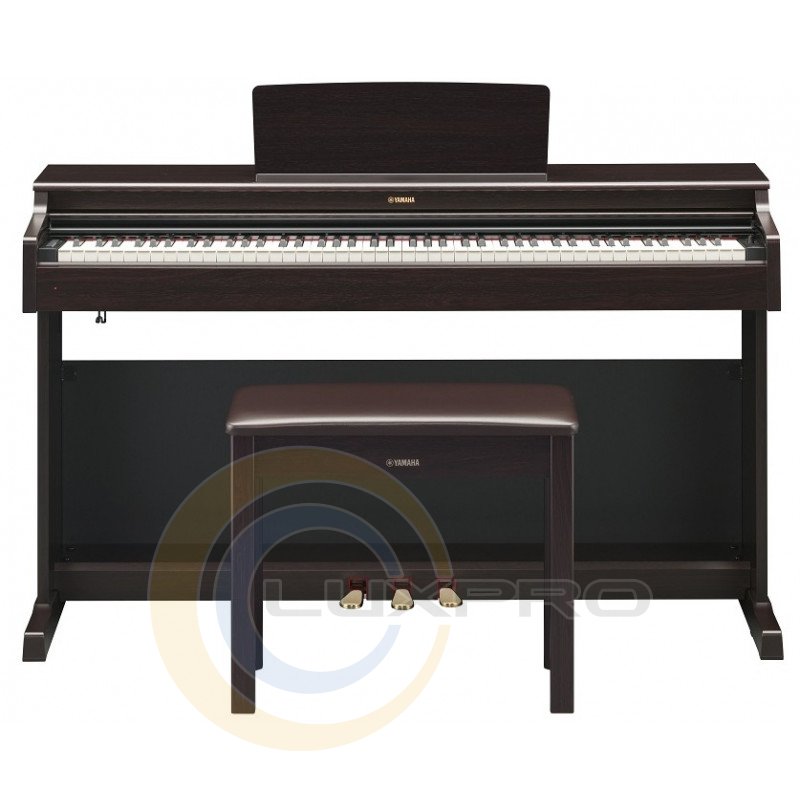 YAMAHA YDP164R - цифрове фортепіано, механіка: молоточковая механіка Graded Hammer 3 (GH3) c верхом клавіш зі штучної слонової кістки і чорного дерева, клавіатура: 88 клавіш, чутливість клавіатури: Hard / Medium / Soft / Fixed, тон-генератор: Piano Sound: Yamaha CFX, поліфонія: 192 нот, тембри: 10, контролери: 3 педалі Damper / Sostenuto / Soft, секвенсор: 2-трековий, ефекти: реверберація, Intelligent Acoustic Control (IAC), Damper Resonance, поділ клавіатури: Dual / Layers / Duo, пам'ять: 900кБ, метроном : Так, 5 - 280 bpm, акустика: 20Вт x 2, 12см x 2, композиції: 10 Demo Songs, 50 Piano Preset Songs, вихід для навушників: 2, USB TO HOST: так, розміри: 1357 x 849 x 422 мм, вага: 42 кг, додатково: Acoustic O ptimizer, комплектація: фірмова банкетка в комплекті, виробництво: Індонезія, гарантія: 24 місяці, живлення: мережевий адаптер PA-300 в комплекті.