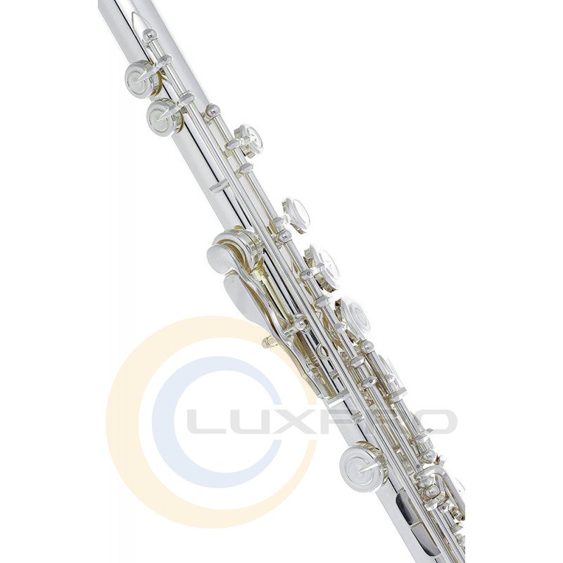 YAMAHA YFL472 - флейта, модель середнього рівня, срібні корпус і головка, клавіші з нейзильберу з срібним покриттям, кільцеві клавіші, зміщений G, E механізм. Головка і корпус флейт Yamaha 400 серії виготовлені з того ж срібла 925 проби, що і дорогі професійні моделі для отримання багатого насиченого і неймовірно виразного звучання.