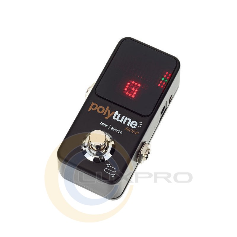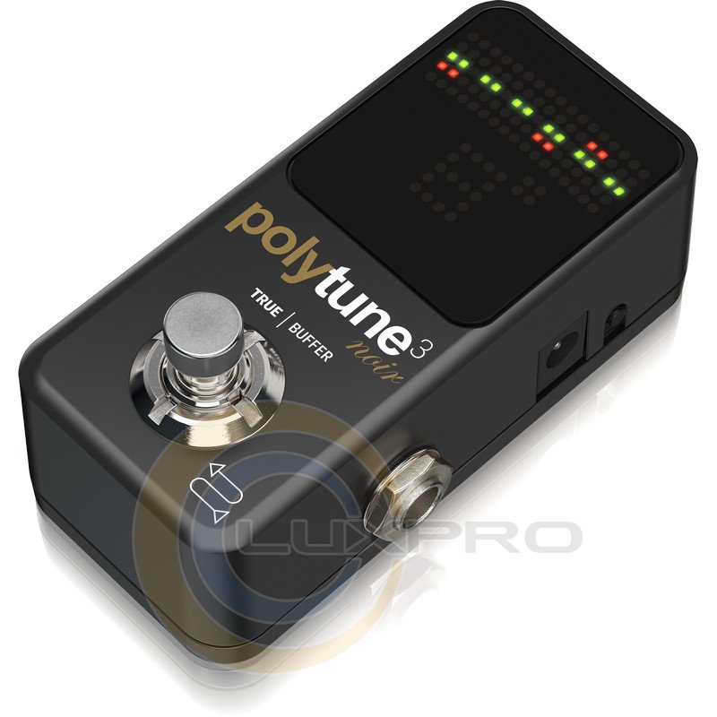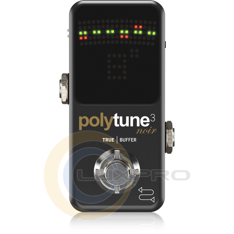 TC Electronic PolyTune 3 NOIR - підлоговий гітарний тюнер компактного розміру. Цей тюнер може бути використаний для настройки електрогітар, акустичних гітар, бас-гітар, включаючи 5- і 6-струнні інструменти. Спеціальний режим "always on" підтримує тюнер в активному режимі, дозволяючи робити настроювання інструменту "на льоту". Є поліфонічний режим роботи для швидкого налаштування всіх струн одночасно. Всі персональні настройки тюнера зберігаються в пам'ять навіть при раптовому відключенні живлення.