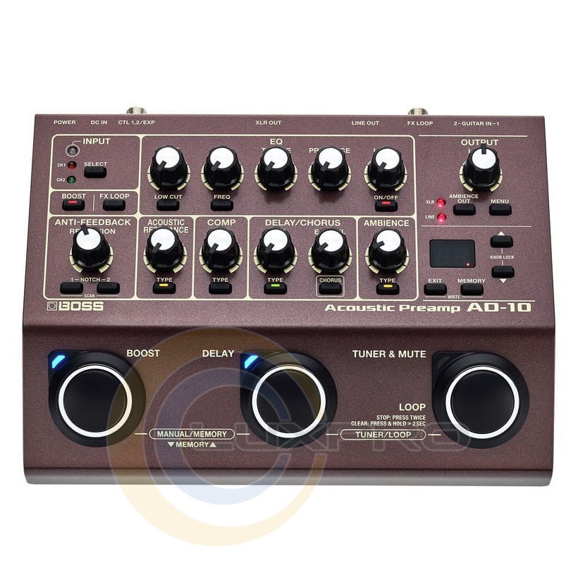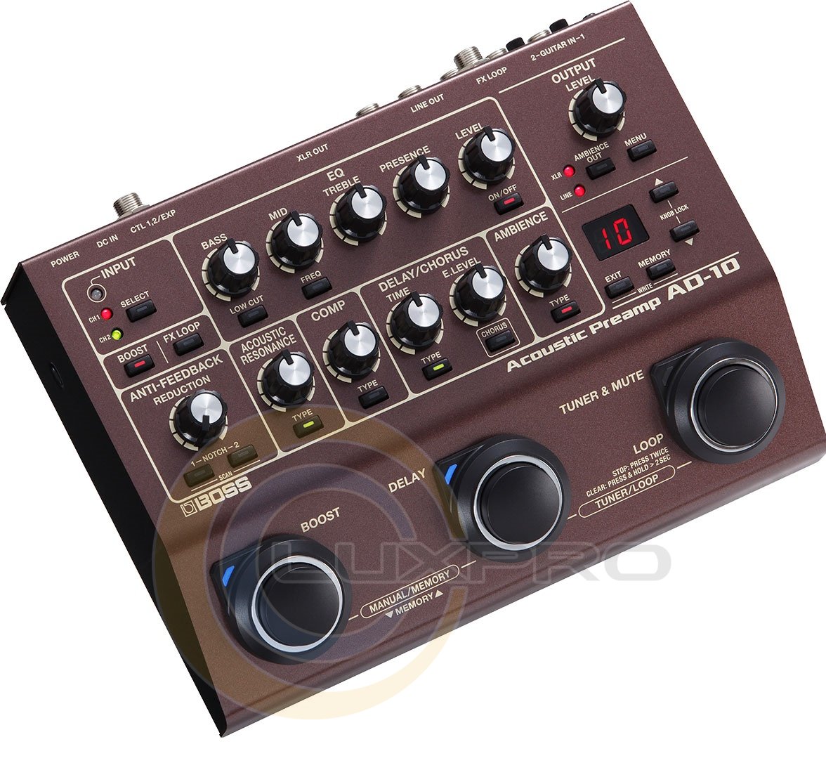 AD-10 змінює уявлення про функціональні можливості акустичних предусилителей, виводячи їх на новий рівень завдяки революційній технології обробки звуку Acoustic Resonance компанії BOSS. Цей вдосконалений підхід дозволяє відтворювати складні резонансні коливання корпусу і струн музичних інструментів, які губляться при використанні більшості звукознімачів, зберігаючи виразність і природні вібрації, що мають величезне значення для звуку акустики.