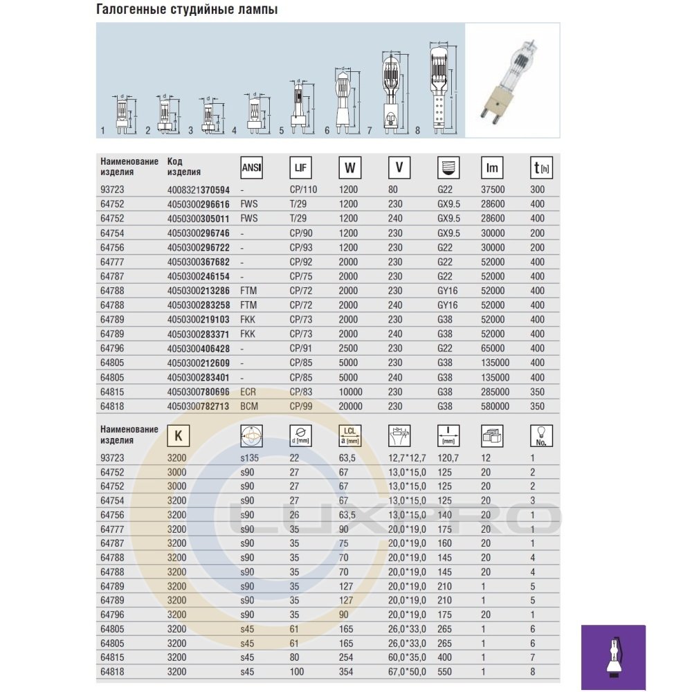 Лампа OSRAM 64805 - одноцокольная галогенні лампи потужністю 5000 Вт для застосування в професійному кіно- і телевізійному виробництві, сфері розваг, для освітлення театральних і концертних сцен. Лампа працює при напрузі 230/240 В.