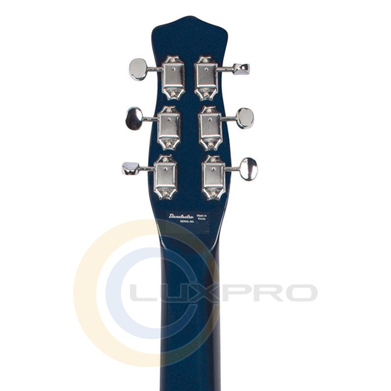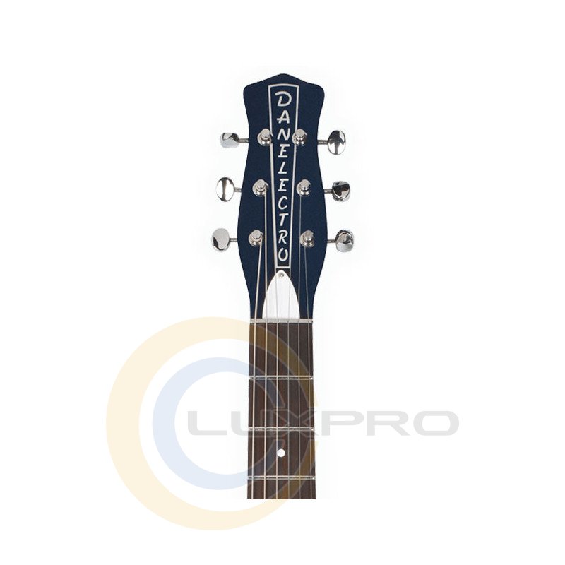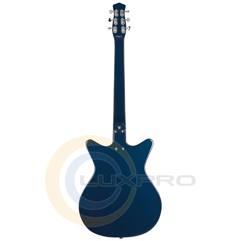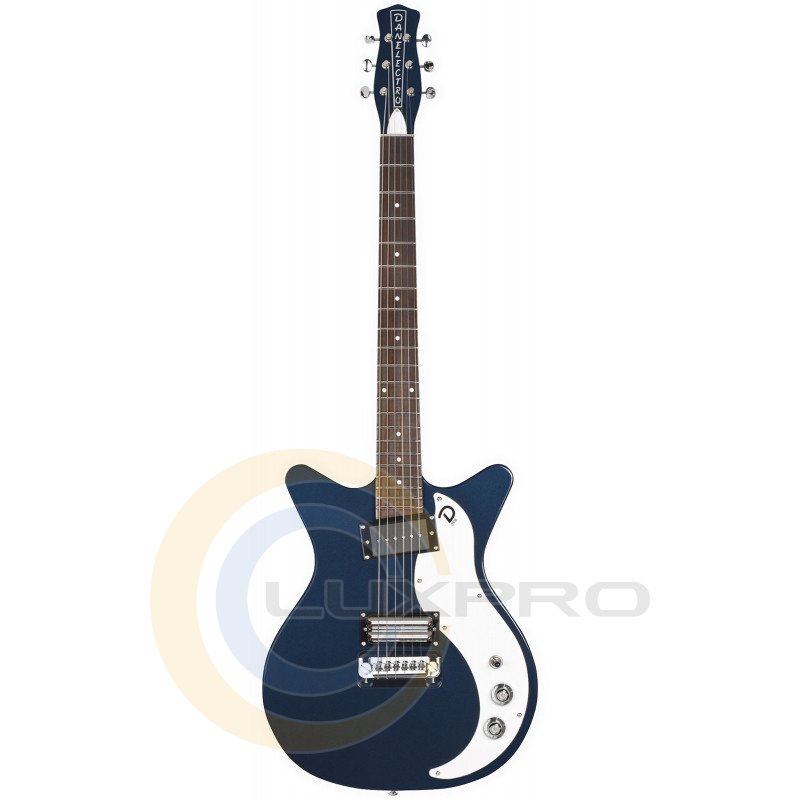 DANELECTRO 59X DBLU - електрогітара, тип конструкції: гриф на болтах, корпус: частково порожнистий (Chambered Solid Body) корпус, центральна частина: фанера з тополі (Poplar Plywood), верхня і нижня деки: Мазоніт (Masonite), мензура: 25 "(635 мм), гриф: клен, накладка грифа: палісандр (Rosewood), профіль грифа: профіль типу "с", ширина грифа: 42 мм (нульовий поріжок), радіус накладки грифа: 14 "(356мм), бридж: Wraparound Tune-o-Matic (з індивідуальної регулюванням сідел), звукознімачі: збільшений сингл з потужним виходом + Dual Lipstick® хамбакер, лади: 21 лад, механіка: нікельована, кілки: нікельовані колки типу Kluson, управління: 3-позиційний ий перемикач, 1 х гучність, 1 х тон (c push-pull), виробництво: Корея, гарантія: 12 місяців (на механічні та електронні компоненти інструменту).