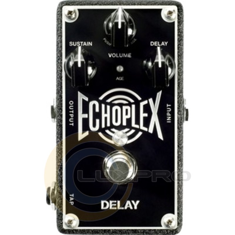Ось тут і виходить на сцену Dunlop EP103 Echoplex Delay. Розміром з канонічну Phase 90, володіючи простим управлінням і високоякісним 100% аналоговим трактом для необробленого сигналу, він повною мірою відтворює легендарне звучання EP-3. Регулятор "Delay" встановлює час повторень - від 4 до 750 мсек, ручка "Sustain" відповідає за кількість повторень, а "Volume" - за вихідну гучність.