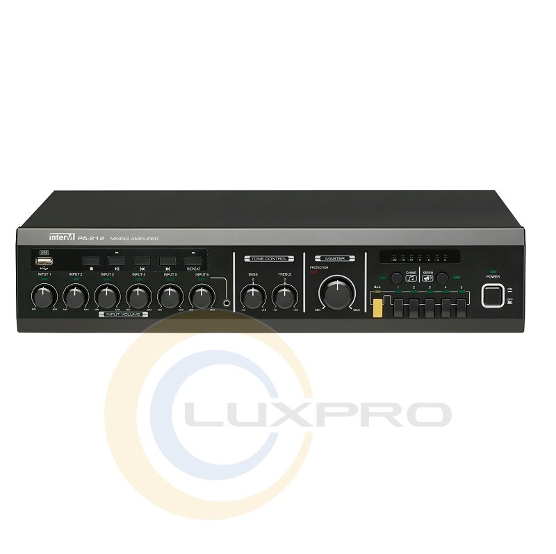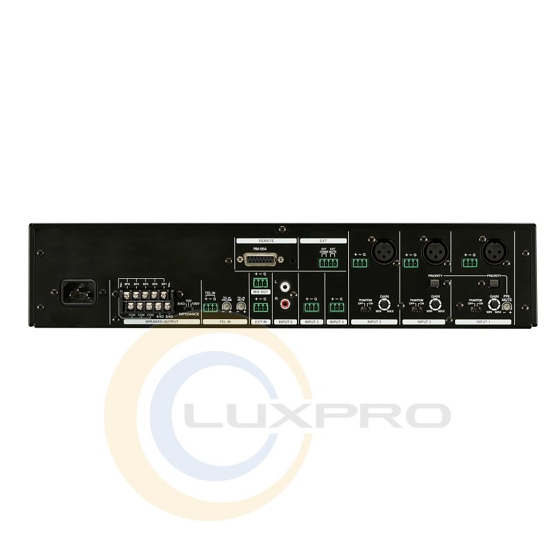 У пристрої передбачені 5 універсальних входів, 2 лінійних входи для підключення CD програвача і інших музичних джерел, лінійний вхід для підключення АТС, генератор сигналів '' ГОНГ '', кнопковий селектор на 5 зон, регулятор тембру, захист акустичних систем від постійної напруги, кольоровий LCD дисплей для відображення рівня вихідного сигналу, можливість віддаленого управління вихідним рівнем за допомогою пульта VCA. Перший мікрофонний вхід і вхід для підключення АТС є пріоритетними.