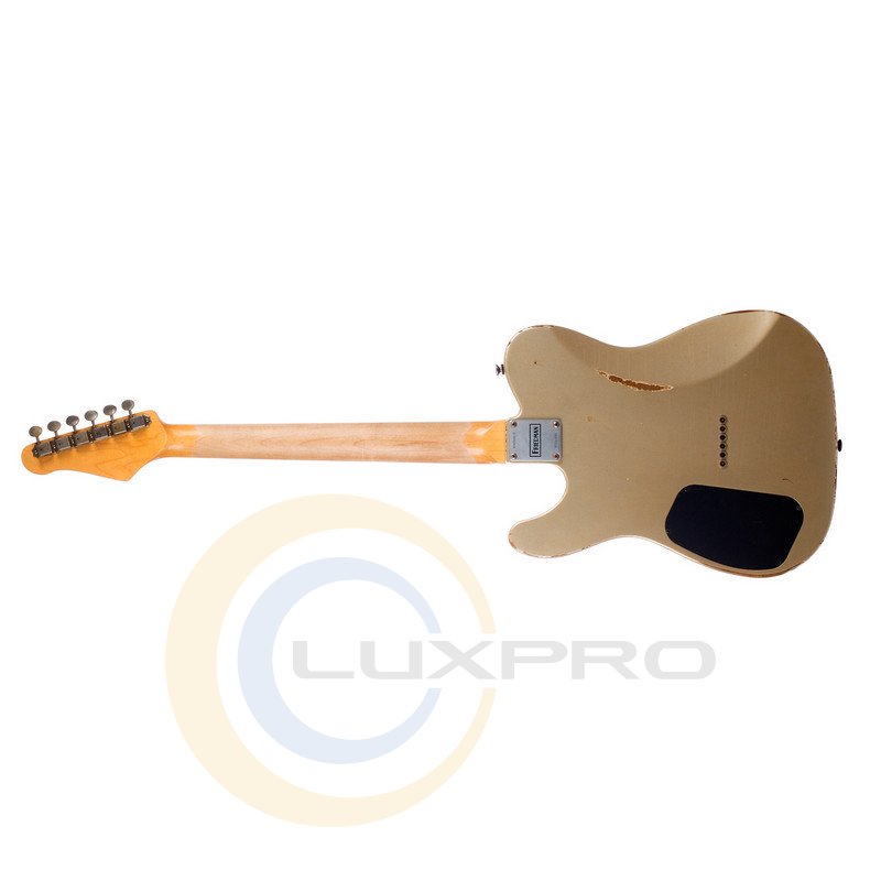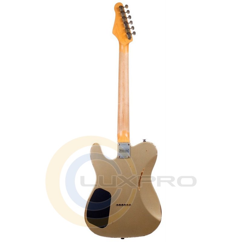 VintageT ARGNH - електрогітара, гриф на болтах (Bolt-on), корпус: вільха (цільна), мензура: 25.5 ", гриф: клен, накладка грифа: палісандр, профіль грифа: 60's classic, ширина грифа: 43 мм (нульовий поріжок), радіус накладки грифа: 10 "~ 14" (мультірадіус), інкрустація: точки - маркери ладів, бридж: фіксований типу Hardtail, звукознімачі: Friedman Classic Humbucker х 2 (HH), лади: 22 (Jescar 47095), верхній поріжок: Tusq, механіка: состаренная механіка Chrome aged, кілки: Vintage Kluson, управління: 1 гучність, 1 тон, 3-позиційний перемикач, колір: Shoreline Gold Vintage Dsitressed, комплектація: гітара, фірмовий кейс, сертифікат відповідності, виробниц ство: США.
