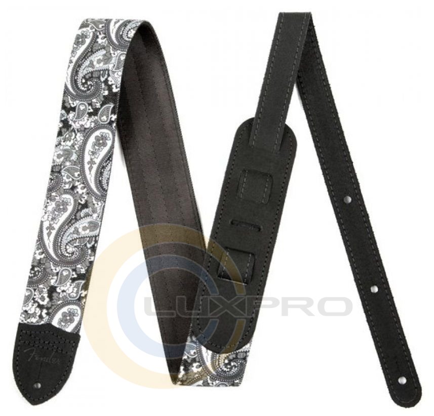 FENDER STRAP PAISLEY DENIM '2 GREY - це ремінь для гітари від компанії FENDER, виконаний в стильному дизайні: матеріалами були обрані тканину і шкіра, а в якості візерунка був обраний орнамент "Пейслі" в сірих тонах.