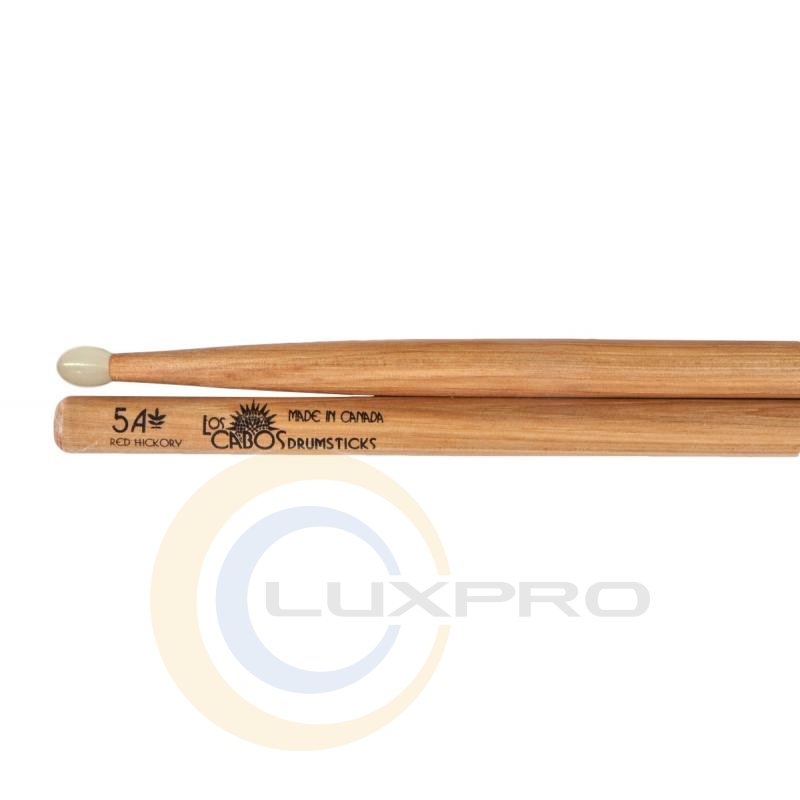 Los Cabos LCD5BRHN - 5B Red Hickory Nylon Tip - Барабанні палички з ядрового деревини ліщини, розмір 5B, довжина 16 '', діаметр 0.598 '', нейлоновий наконечник, натуральна обробка.