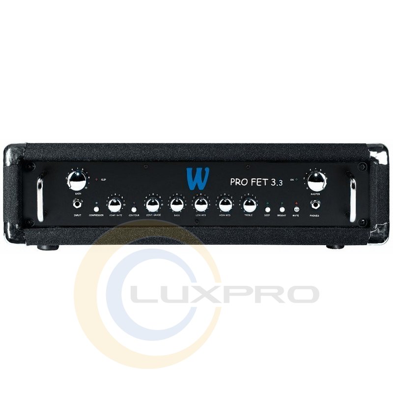 PROFET 3.3 - підсилювач, "Голова", MOSFET 300Вт @ 4Ом, регульований компресор, 4-х смуговий еквалайзер, адаптивний регулятор гучності, регулювання вхідної чутливості, регулювання Deep, Bright, петля ефектів, доп. виходи: лінійний, для навушників, DI вихід, 19 "2HE.
