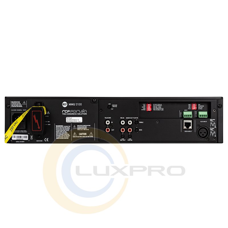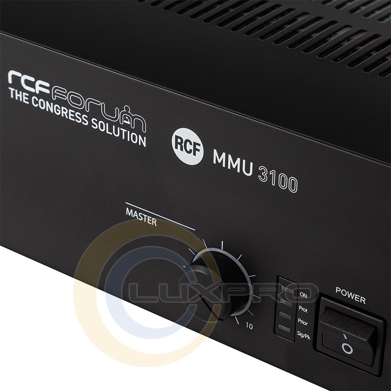 Майстер-блок MMU 3100 включає в себе всі функції, необхідні для організації зборів до 80 комплектів мікрофонів. Є також вихід для запису і вхід для відтворення, а також виділений вхід і вихід для взаємодії з системою телеконференції. Пристрій може забезпечити 80 Вт на виході 100 В або 70 В для підключення додаткових акустичних підсилювачів, присутніх в кімнаті. Також доступний вихід з лінійним рівнем для зв'язку з незалежною системою звукопідсилення.