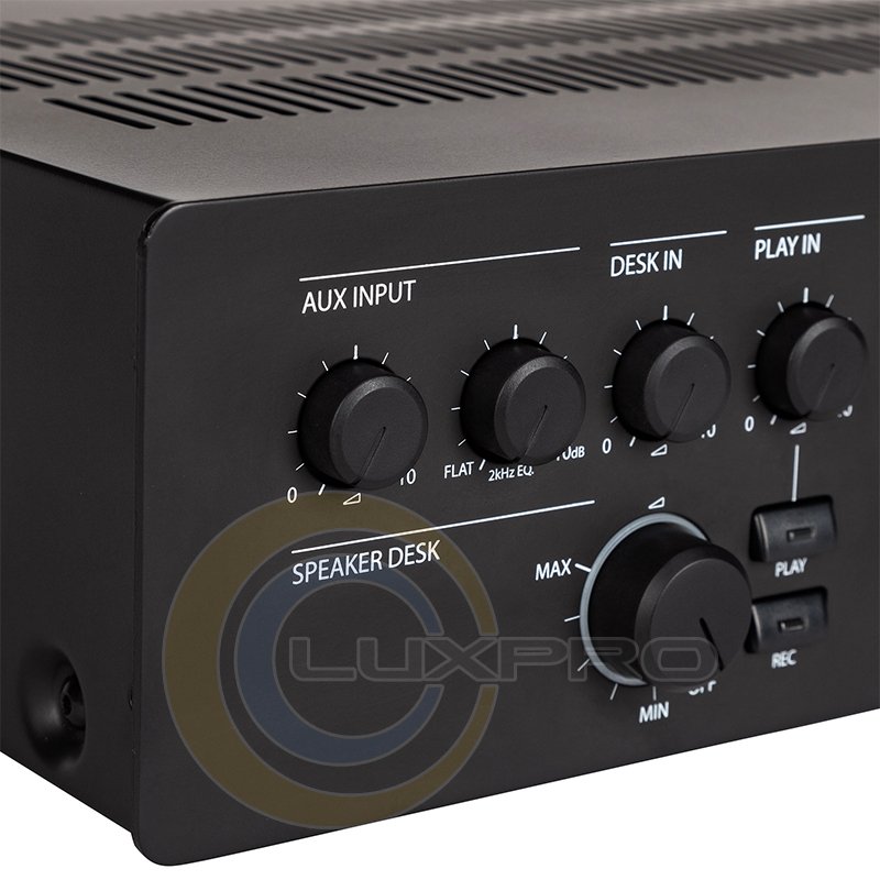 - Введення і виведення підключень до зовнішнього пристрою запису / відтворення, селекторні перемикачі PLAY / REC зі світлодіодними індикаторами. Регулятор гучності і тон еквалайзера на PLAY-OUT.