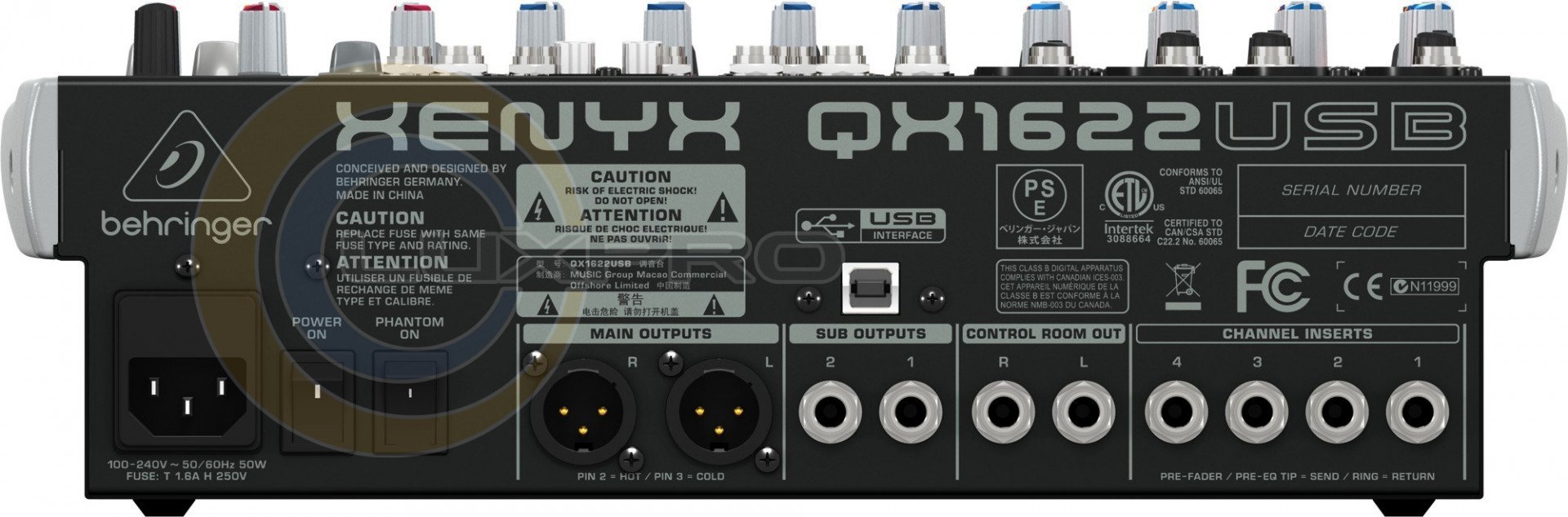 Крім 4 основних мікрофонних входів є можливість придбати до мікшера wireless адаптер і підключити два бездротових мікрофона. Як і інші мікшерні пульти Behringer, XENYX QX1622USB сумісний з конденсаторними і динамічними мікрофонами за рахунок наявності відключався, фантомного харчування. Для забезпечення широкого динамічного діапазону мікрофонні входи мають власні попередні, а щоб уникнути паразитарних шумів в мікшері встановлені фільтри низьких частот.
