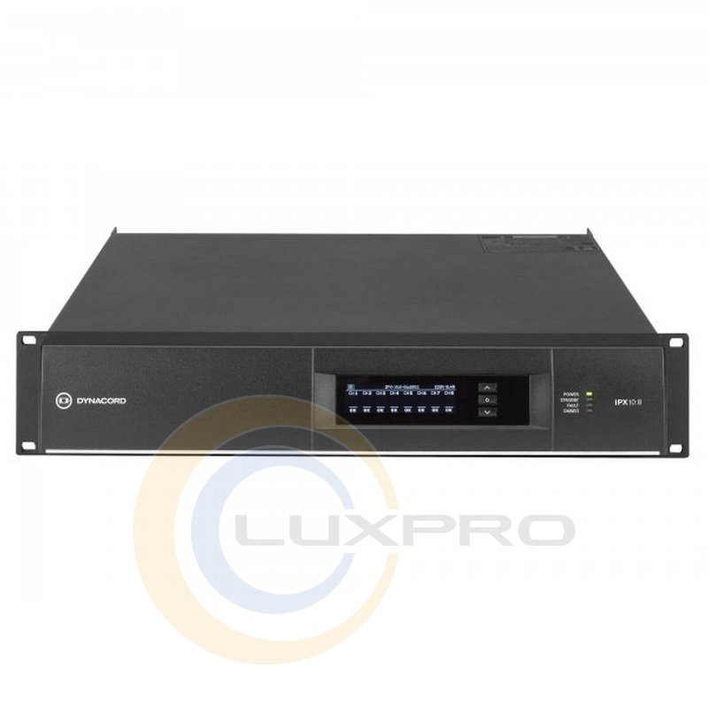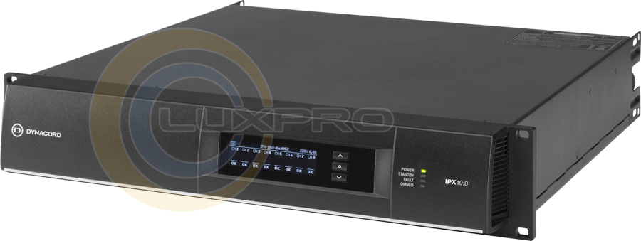 Підсилювач IPX10:8 з DSP процесором, з цифровим керуванням і PFC-харчуванням, повністю інтегрований DSP процесор з обробкою 96 кГц, з високою роздільною здатністю і FIR фільтрами, інтеграція DANTE і OCA через OMNEO, режими роботи 70/100 В і з низьким опором, високоефективна технологія Eco Rail для зниження експлуатаційних витрат.
