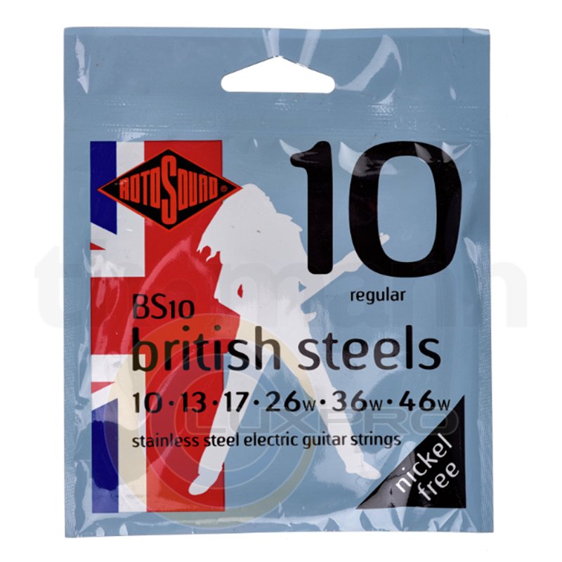 ROTOSOUND BS-cтруны серії BRITISH STEELS (Stainless Steel) для електрогітар з нержавіючої сталі і високим вмістом заліза. Феритна нержавіюча сталь покриває цей набір струн, який пропонує чіткий, яскравий, енергійний і протяжний звук, а так само їх надійне захоплення!