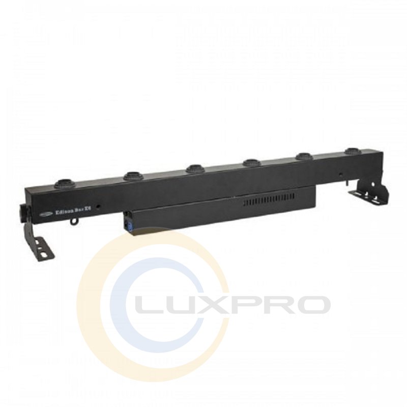 Showtec Edison Bar E6 DMX Dimmer E27 - бліндер під 6 світлодіодних ламп з цоколем E27 (не входять в комплект). Придатні дімміруемие джерела світла потужністю до 20 Вт. Допускається управління з контролера по протоколу DMX512 (вхід і вихід XLR 3-pin). Для ручного доступу передбачені LCD дисплей і кнопки меню. Також є внутрішній мікрофон для звукової активації.