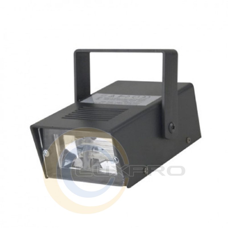 Mini Strobe - стробоскоп, призначений для експлуатації в сухих, помірно запилених, приміщеннях. Як джерело світла використовується не підлягає заміні імпульсна лампа. Управління ручне. Охолодження відбувається за допомогою природної циркуляції повітря. Харчування здійснюється від стандартної електромережі. Міцний корпус виконаний з високоякісного пластику. Для монтажу пристрою передбачена поворотна ліра.