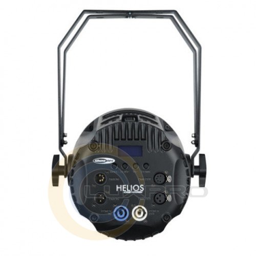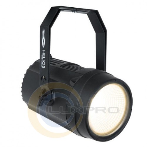 Helios 150 - 4200K - профільний прожектор білого світла, що заливає, призначений для експлуатації в сухих, мало запилених приміщеннях. Як джерело світла використовується 1 COB LED. Управління гнучке. Можливо зовнішнє по протоколу DMX512, для чого на тильній поверхні передбачені пара роз'ємів XLR 3-pin (вхід і вихід) і пара роз'ємів XLR 5-pin (вхід і вихід). Для безпосереднього управління там же є LCD дисплей і кнопки меню.