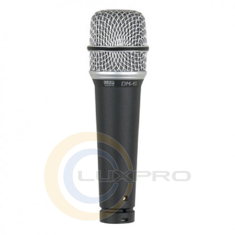 DM-45 - мікрофон динамічного типу, інструментальний, з гіперкардіоїдною діаграмою спрямованості, концертний (в тому числі, для запису), міцний корпус із сталевою захисною сіткою, провідний. Гіперкардіоїдний діаграма спрямованості сприяє збільшенню коефіцієнта посилення до виникнення зворотного зв'язку. Призначений для озвучування струнних, духових, перкусій, акустичних гітар, гітарних підсилювачів. Кабельний роз'єм XLR. Не має потреби в електроживленні. Додаються інсталяційний амортизатор, затиск для ударних, чохол.