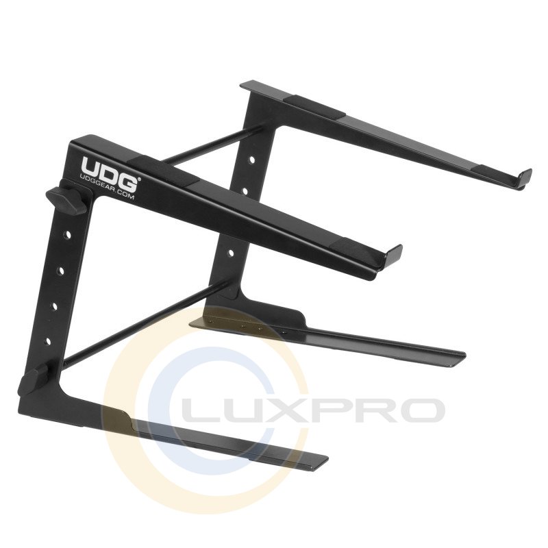 Стійка для ноутбука UDG Ultimate Laptop Stand або столу; ергономічний дизайн і універсальність з урахуванням міцності і надійності. Це ідеальна підставка для підтримки діджейського обладнання, такого як ноутбук, контролери, мікшери та т. Д. Виготовлена з цільної стали зі стійким до подряпин порошковим покриттям, має нескользящие опорні кронштейни легко збирається / розбирається.