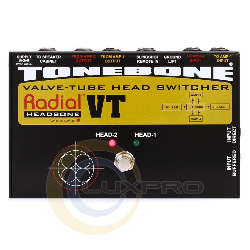 Headbone VT - педаль ефектів, являє собою висококласний селектор для підключення двох лампових головних підсилювачів до одного кабінету.