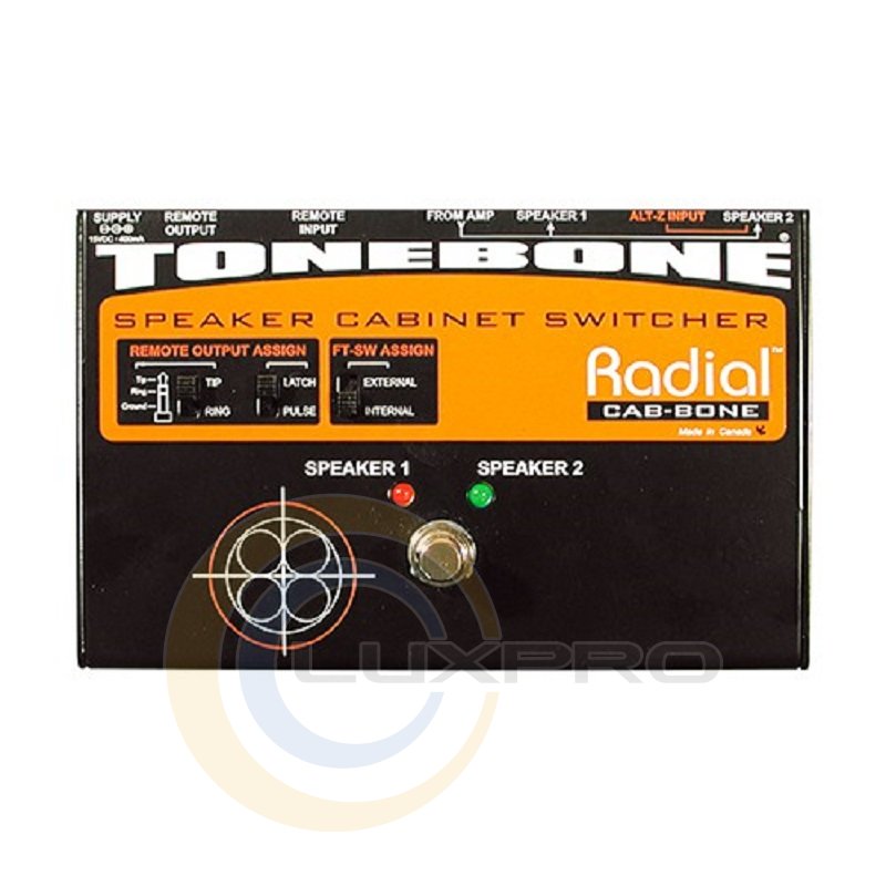 Cabbone - педаль ефектів, просунутий селектор / світчер розроблений спеціально для підключення двох кабінетів до одного головного підсилювача потужністю 100W з можливістю вибору кабінету.