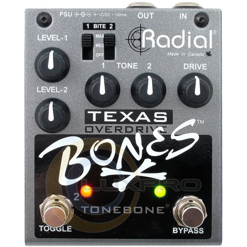 Texas - педаль ефектів, овердрайв, яка надає виконавцю першокласне звучання від всесвітньо відомого бренду Radial, 2 канали, контроль тону, контроль рівня.