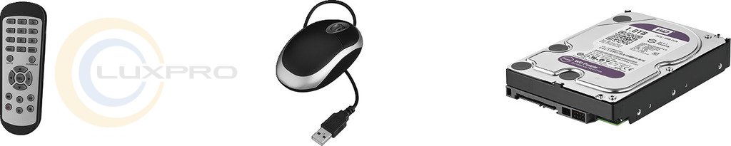 - Поставляється з блоком живлення, інфрачервоним пультом дистанційного керування, USB-мишею і пакетом програмного забезпечення.