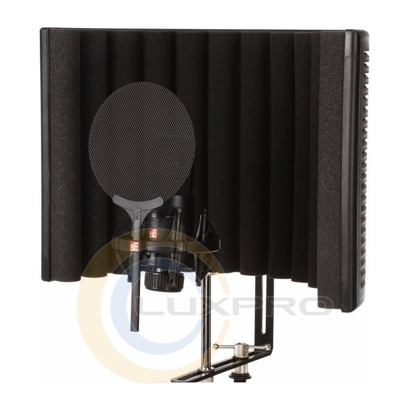 sE Electronics RF-X Portable Vocal - портативна мікрофонна ізоляційна панель c кріпленням на мікрофонну стійку. Якщо ви робите запис в акустично непідготовленого приміщенні (спальні, шафи і т. Д.), Reflexion Filter® допомагає досягти чистого сигналу без будь-яких спотворень. Нові матеріали були розроблені для того, щоб зробити RF-X легше своїх попередників, а також для підтримки його довговічності, що дозволяє позиціонувати RF-X як універсальний продукт, що підходить для будь-якої складної робочої середовища. Він має чотиришарову акустичну конструкцію фільтра, що складається з зовнішньої вентильованого композитної панелі, шару вовняної тканини, шару повітряного зазору і внутрішнього акустичного шару піни.