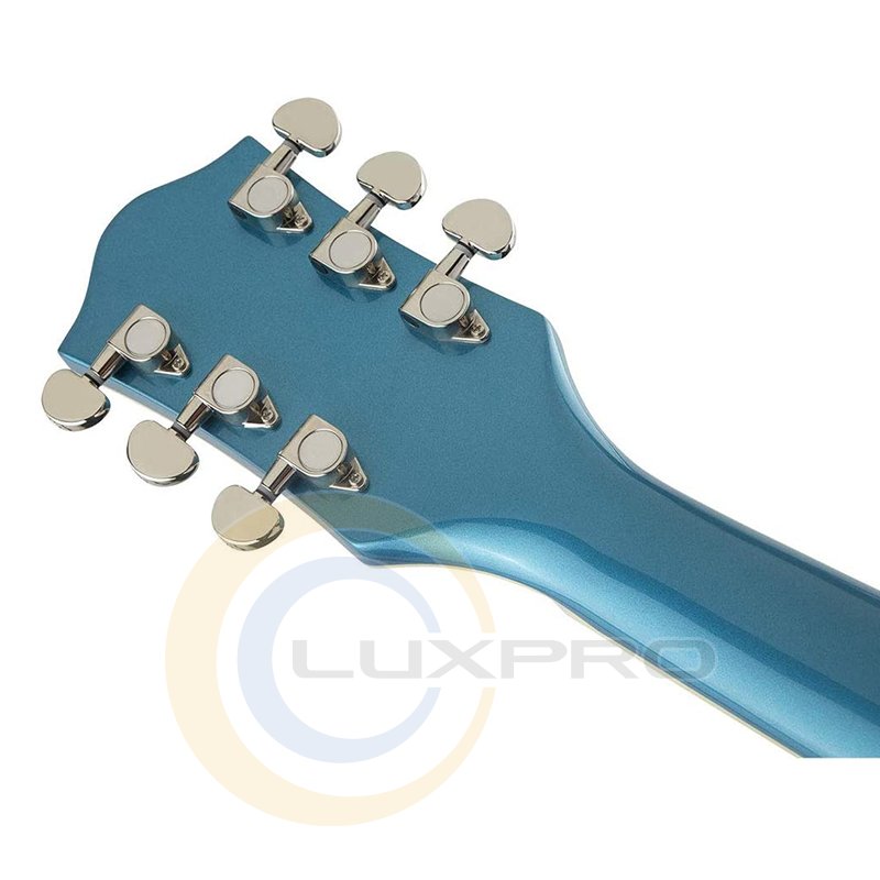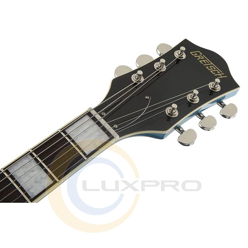 GRETSCH G2622 STREAMLINER w Bigsby LR Riviera Blue - сучасна напівакустична електрогітара, спеціально створена для гітаристів, які завжди прагнуть до більшого: більшої продуктивності і в першу чергу більшої гучності. Особливість представленої моделі - це новітні хамбакери Broad'Tron власної розробки інженерів Gretsch, сконструйовані спеціально для цієї гітари, і центр-блок з ялини, зміцнює верхню деку гітари і дозволяє уникнути небажаної зворотного зв'язку при грі на високій гучності.