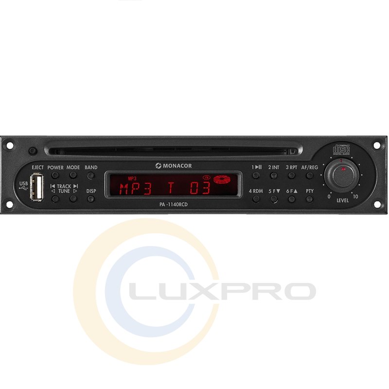 Monacor PA-1140RCD - тюнер /CD-програвач з інтерфейсом USB, для підсилювачів мікшування PA зі вставним відсіком спереду.