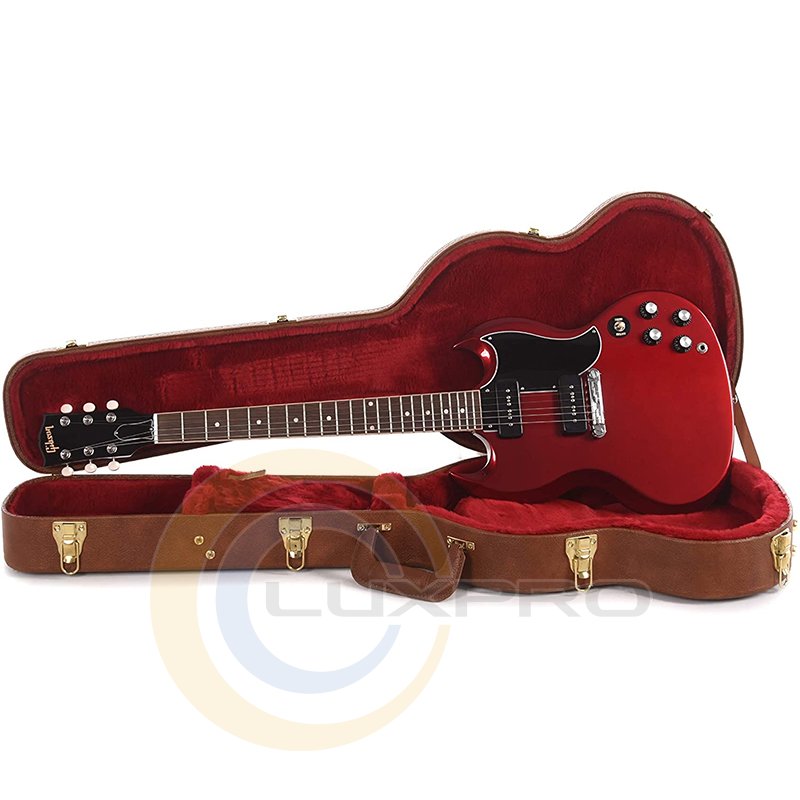 GIBSON SG SPECIAL VINTAGE SPARKLING BURGUNDY виконана в неймовірно гарному кольорі бургунді. Крім того, в комплект входить фірмовий кейс Gibson.