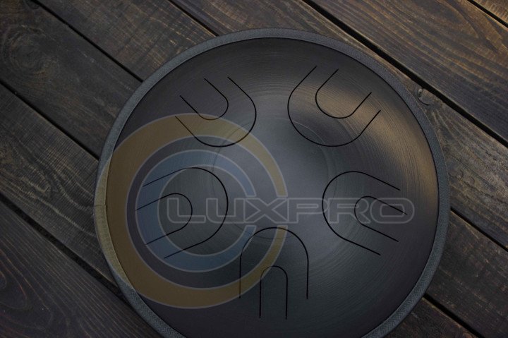 Глюкофон «Мира» HIJAZ Ø36 см. Здвоєні пелюстки зручні для гри акордами. В інструменті 10 язичків і даної кількості цілком достатньо для створення красивої, різноманітної композиції. Чим більше нот, тим більше простору для фантазії. Дві півсфери з'єднуються шляхом склеювання, а не зварювання двох частин інструменту (як у стандартних глюкофонов). Використовуємо надміцний санітарний герметик, який застосовується при склеюванні хендпанов (Ханг). Завдяки більш тонкої сталі ви можете легко грати руками або паличками. Крім того, тонка сталь зменшує вагу, тому даний інструмент легше класичного сталевого барабана.
