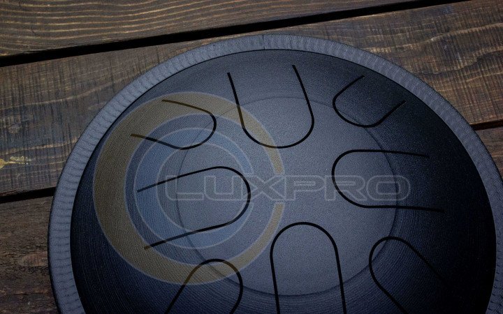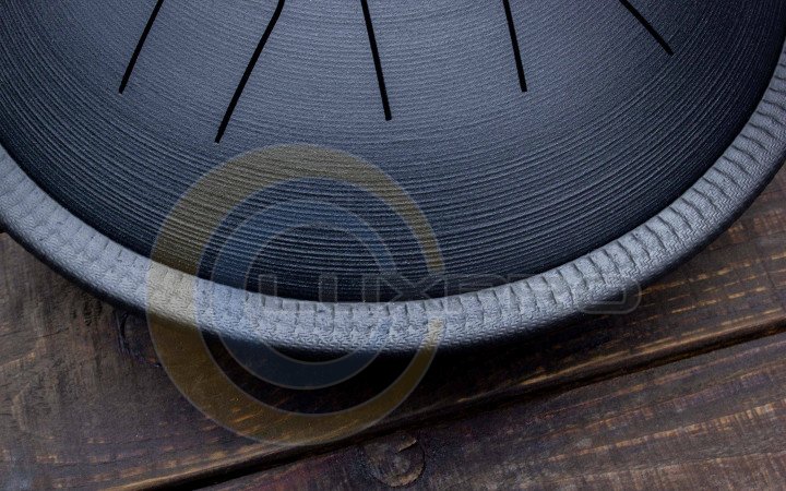 Глюкофон «Сатурн» HIJAZ Ø26 см. Дві півсфери з'єднуються шляхом склеювання, а не зварювання двох частин інструменту (як у стандартних глюкофонов). Використовуємо надміцний санітарний герметик, який застосовується при склеюванні хендпанов (Ханг). Завдяки більш тонкої сталі ви можете легко грати руками або паличками. Крім того, тонка сталь зменшує вагу, тому даний інструмент легше класичного сталевого барабана.