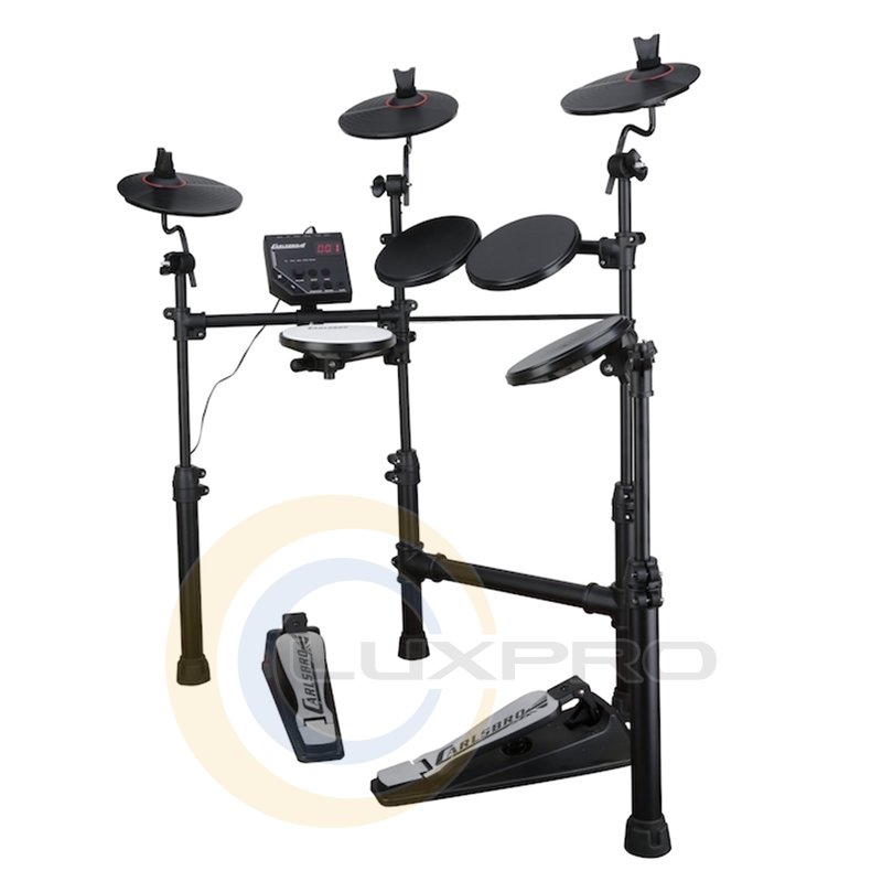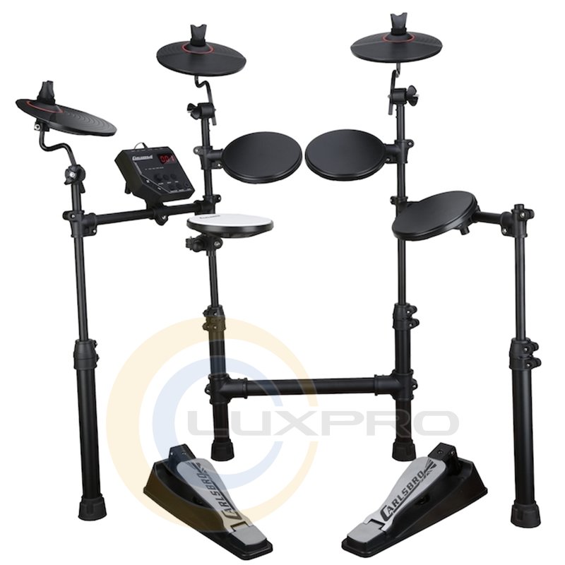 Електронна ударна установка CARLSBRO CSD100 складається з звукового модуля Commander 100, 4 барабанних педів, 3 тарілок, включаючи двозонний Ride і телескопічну раму з регуляцією висоти. Commander 100 має 10 барабанних пресетів, 108 звуків, 10 демо-пісень, aux-вхід і метроном. Ідеально підходить для живих виступів або записи в студії.